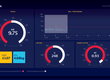 Tecnología de punta para el ahorro de energía que hace visible lo invisible. Analice datos en tiempo real en múltiples sedes y obtenga una perspectiva de su consumo energético sin precedentes